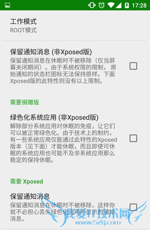 绿色守护无需root也能够运行得很好,root后则增加了自动休眠等功能,如果安装了Xposed框架,还能够切断App间的交叉唤醒。国内App有一个很不好的作风,启动某个App会将其他App一同唤醒,开个贴吧顺道唤醒云盘啊地图啊什么的,太正常不过了。绿色守护结合Xposed框架,能够有效拦截App间的相互唤醒,对于root用户而言,这个功能可谓不容错过。