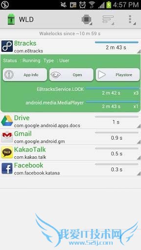 iPhone和安卓机都使用了高性能的芯片,但在人们的印象中,安卓机的发热问题要大得多。这一印象并非无厘头,安卓的后台机制和iOS不同,App很容易就能够利用系统赋予的权限频频唤醒硬件,产生额外的发热。我们不能指望App自觉不做流氓,只好自己来揪出流氓。利用这款Wakelock Detector,能够轻松查出是什么App在搞鬼。