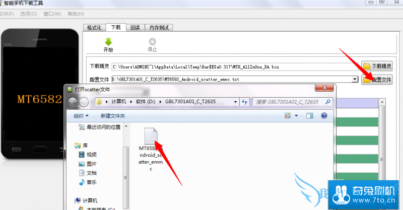 3.打开下载的刷机工具,选择“Scatter-loading”,再选择线刷包里的MT文件,如图