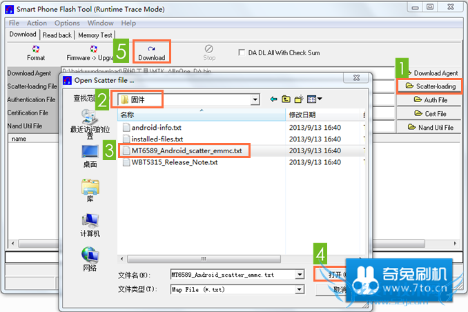 选择 固件 文件夹下的相关文件,点击"Download"