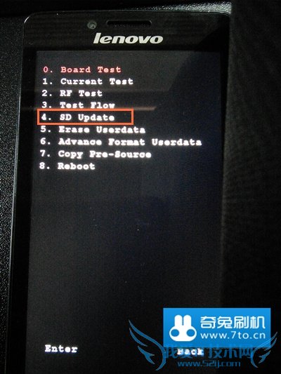 2.用音量键选择升级界面中的第四项 “sd update”,点Enter进入