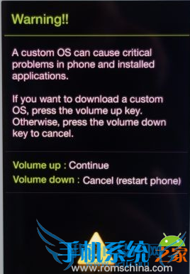 2.然后再按音量上键,进入界面为绿色机器人(见下图),此为刷机模式,也就是大家常说的挖煤模式;