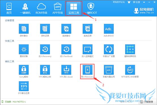 首先下载安装奇兔刷机(点击下载奇兔刷机),然后手机打开USB调试,通过数据线连接电脑,连接成功后选择找到【实用工具】,然后选择【刷入recovery】