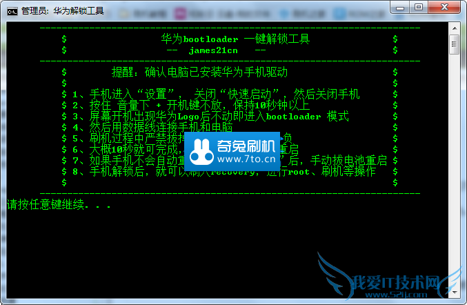 2、打开解锁工具、按任意键如果如下图。表示解锁成功。
