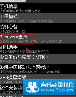 5.在酷派7295A(青春版)手机上安装mtk工具箱,然后打开它,弹出的请求选择允许。进入之后找到Recovery更新,点击之后就能看到之前放进去的酷派7295A(青春版)recovery.img文件了,选择确认就可以了