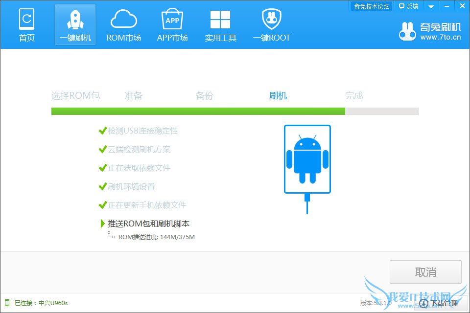 至此一键刷机教程就结束了,更多中兴U960s刷机ROM包可点击进入奇兔刷机ROM市场下载,希望这篇中兴U960s刷机教程对大家有所帮助。
