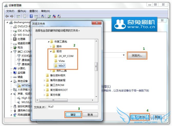 4.在对话框中选择 “浏览计算机以查找驱动程序” 如下图所示选择相应“驱动”的目录,出现红色的驱动安装确认框,请选择“始终安装此设备驱动程序”。