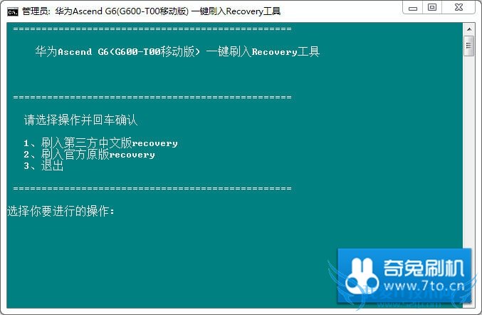 奇兔刷机(http://www.7to.cn/)教您华为荣耀6(H60-L03移动定制版)怎么救砖,华为荣耀6(H60-L03移动定制版)救砖教程 ,简单给你的华为荣耀6(H60-L03移动定制版)刷回官方系统,华为荣耀6(H60-L03移动定制版)刷完官方线刷救砖包后即可正常OTA升级。