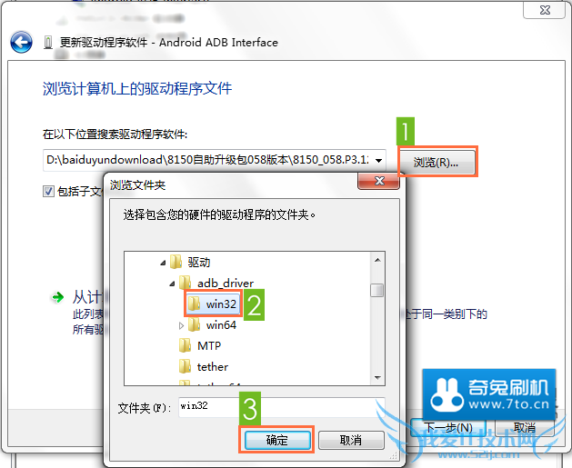 4.安装驱动时指向adb_driver下的子目录(内含分别适用于32位和64位系统的驱动)
