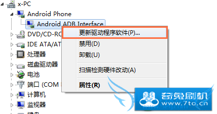 3.插上usb数据线与电脑连接,电脑会提示需要安装驱动(或者直接右键 我的电脑 -> 管理 -> 设备管理 里面找到带 问号或者 感叹号 的驱动设备,右键更新驱动)