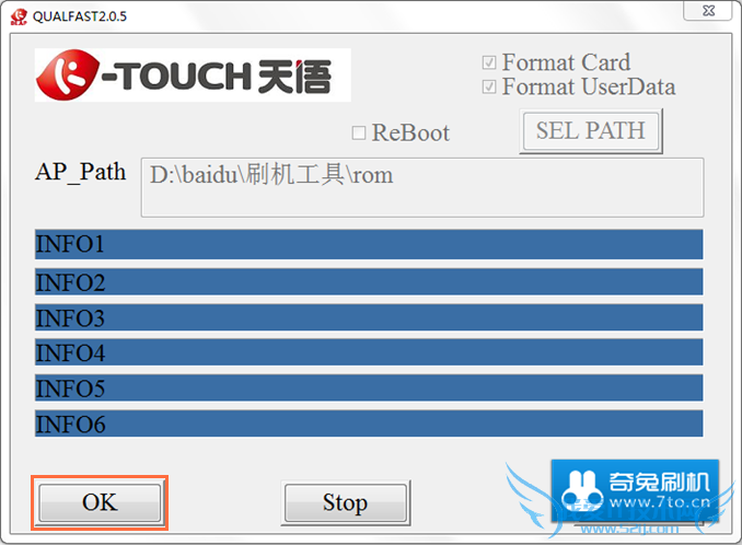 4.把已经进入ap模式的手机连接电脑(不懂怎么进入的请看上面步骤2的说明),点刷机软件的OK键: