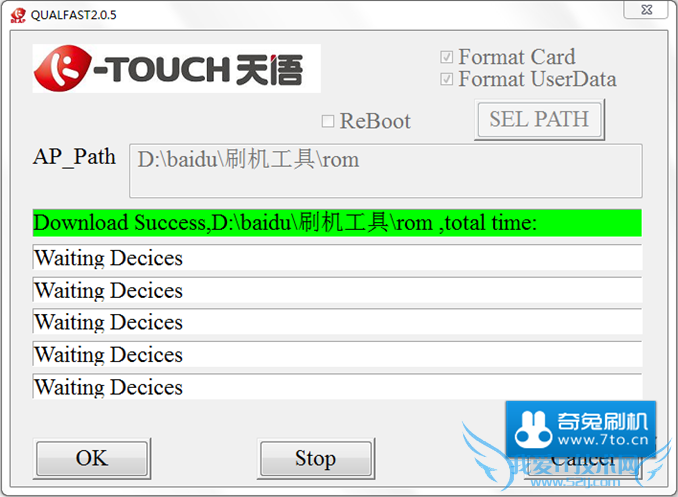 至此天语U86(大黄蜂Kiss 联通版)救砖教程全部结束。还没有学会怎么对天语U86(大黄蜂Kiss 联通版)进行救砖的机友可以试试上面奇兔ROM市场小编给大家分享的这篇天语U86(大黄蜂Kiss 联通版)救砖教程。