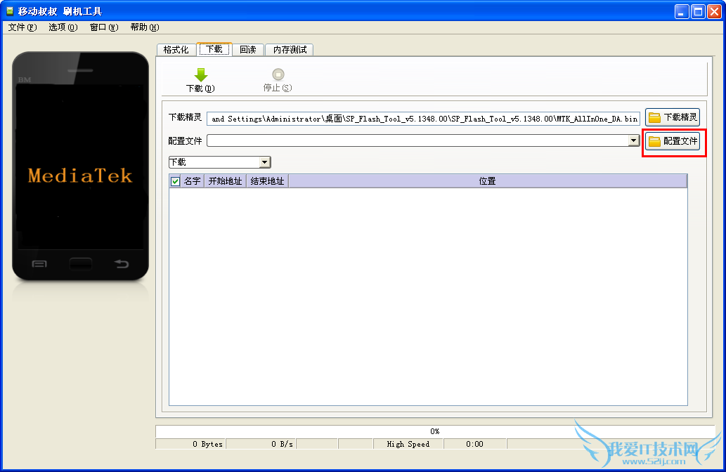 1、点击打开flash_tool.exe,就会有一段英文提示,反正你直接选“YES”就行了!,进去点击配置文件。