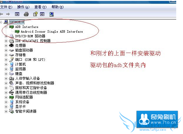 设备管理器会出现ADB驱动....可能有的会直接按装好了....有的则需要找驱动...这里必须得用专用的驱动包...