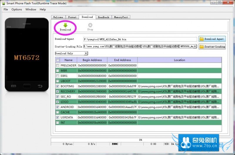 4.然后点击“Download”,再把手机连接到电脑,接下来等待自动刷机,出现绿色圆圈就说明步步高vivo X5L(移动4G版)救砖成功了!