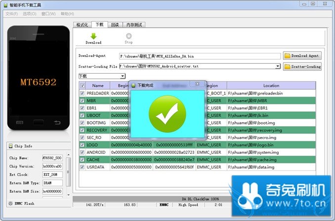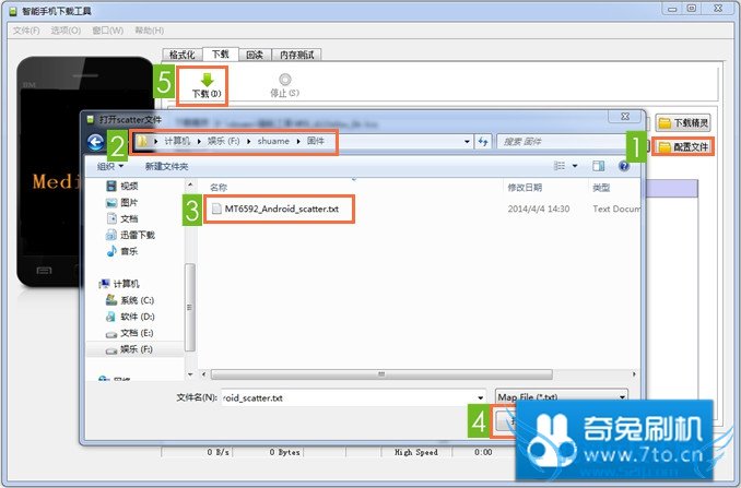 点击 Scatter-loading ,选择 固件 目录下的 MT6592_Android_scatter.txt ,并点击 Download 如下图: