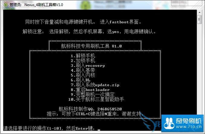 2.运行刷机工具箱里面的 Nexus_4刷机工具箱.EXE 会得到下图