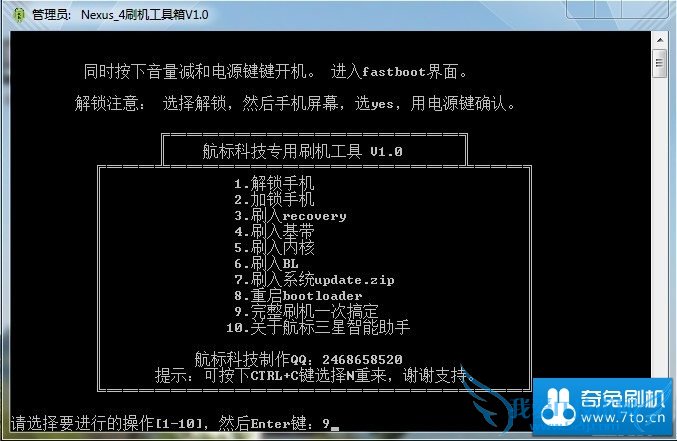 4.此时请再在软件界面 键入“9”完整刷机一次搞定