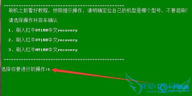 5.在弹出的界面中,选择你自己的型号,然后按回车。等待recovery自动刷入。
