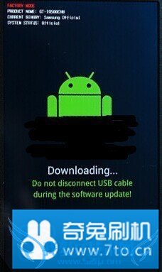 1:手机先完全的关机,然后同时按住手机的音量下键 + HOME键 + 电源键,等待3秒,出现下图界面