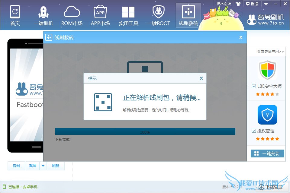 4、选择好小米4C 全网通线刷包下载完成后,解析小米4C 全网通线刷包需要一定的时间,请耐心等待。