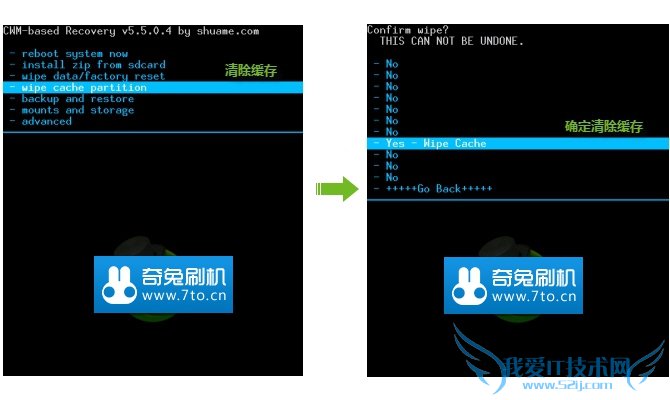 - wipe cache partition 清除缓存 - Yes - Wipe Cache 确定清除缓存
