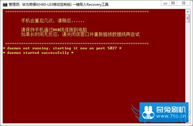 奇兔刷机(http://www.7to.cn/)教您华为荣耀6(H60-L03移动定制版)怎么救砖,华为荣耀6(H60-L03移动定制版)救砖教程 ,简单给你的华为荣耀6(H60-L03移动定制版)刷回官方系统,华为荣耀6(H60-L03移动定制版)刷完官方线刷救砖包后即可正常OTA升级。