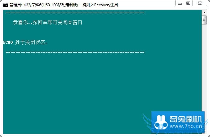 华为荣耀6(H60-L03移动定制版)救砖教程结束了。还不懂学会怎么对华为荣耀6(H60-L03移动定制版)进行救砖的机友可以试试上面奇兔ROM市场小编给大家分享的这篇华为荣耀6(H60-L03移动定制版)救砖教程。