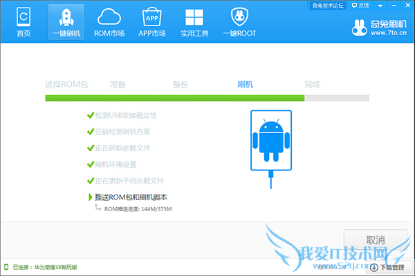 3.等操作完成后,华为荣耀3X畅玩版(G750-T01)(G750-T01)手机进入自动刷机模式啦,这时候只要耐心等待华为荣耀3X畅玩版(G750-T01)(G750-T01)手机自动重启就行了。