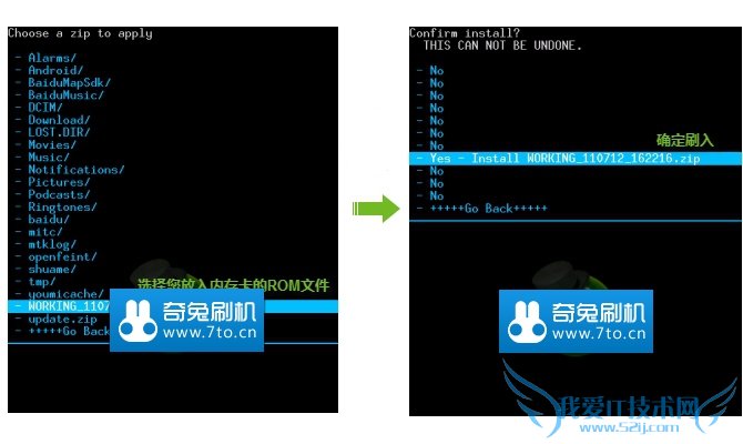 - 选择您所放入内存卡的ROM文件 - Yes - Install 确定刷入