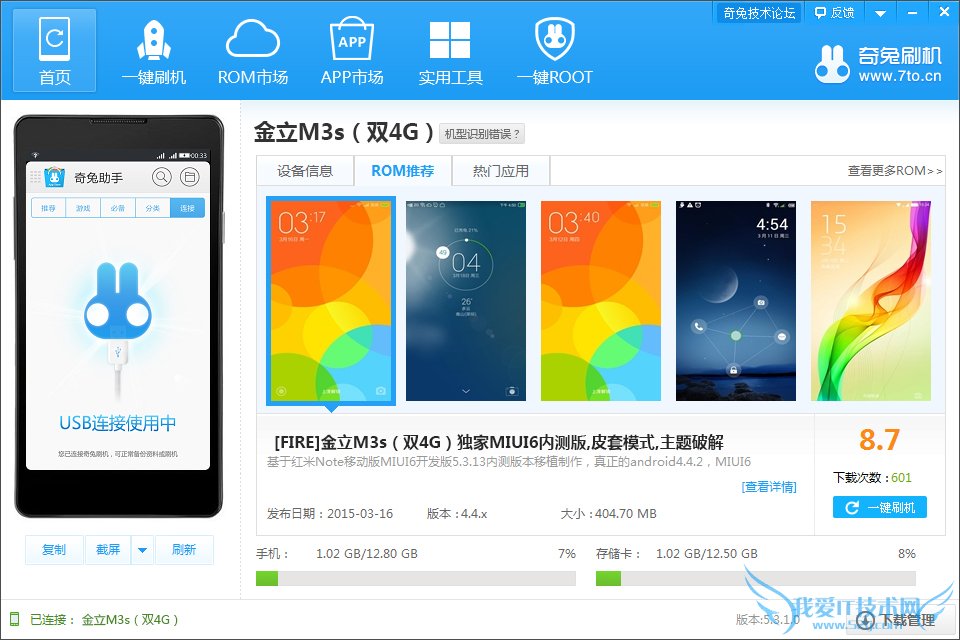 金立M3s(双4G)一键刷机图文教程至此结束, 如果您不喜欢当前这个系统,可以换个别的刷,奇兔刷机ROM市场有丰富的ROM任你挑选,相信大家已经掌握了奇兔刷机的使用方法,马上下载奇兔刷机(下载请戳:http://www.7to.cn/),体验金立M3s(双4G)一键刷机的乐趣吧!