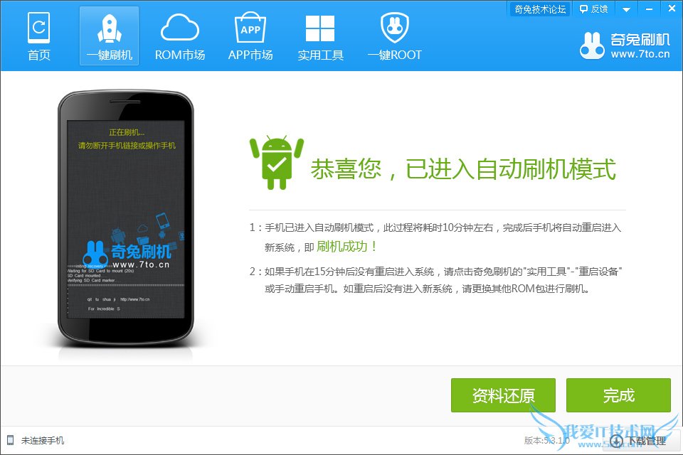 4.等操作完成后,手机进入自动刷机模式啦,这时候只要耐心等待手机自动重启就行了。