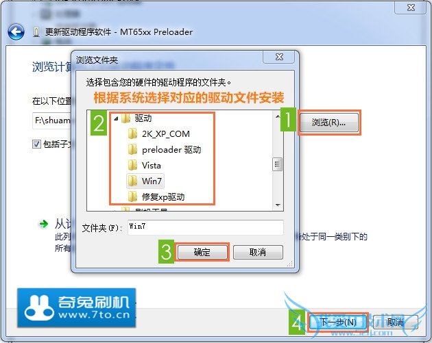 4.在对话框中选择 “浏览计算机以查找驱动程序” 如下图所示选择相应“驱动”的目录