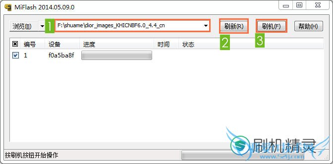 打开MiFlash.exe将复制的内容粘贴到下图步骤1区域位置,按照下面操作: