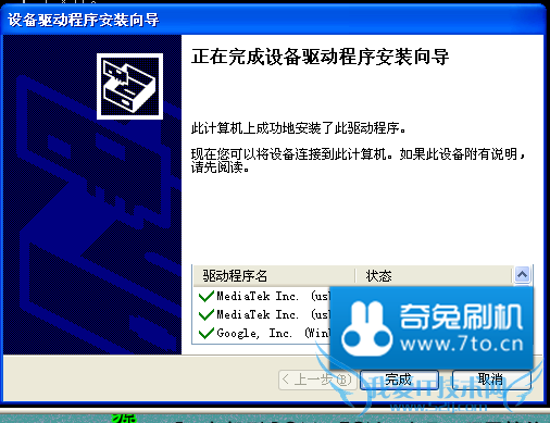 等待程序将驱动文件拷贝到系统,最后如下图所示点击“完成”;