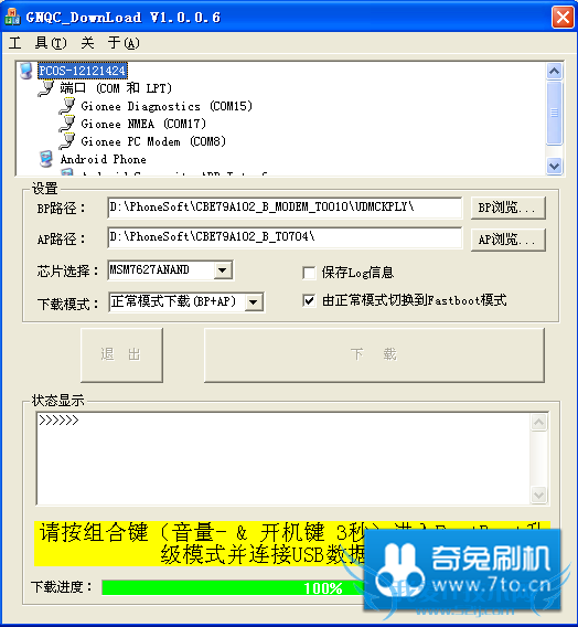 至此金立E7(16G 32G)救砖教程全部结束。还没有学会怎么对金立E7(16G 32G)进行救砖的机友可以试试上面奇兔ROM市场小编给大家分享的这篇金立E7(16G 32G)救砖教程。