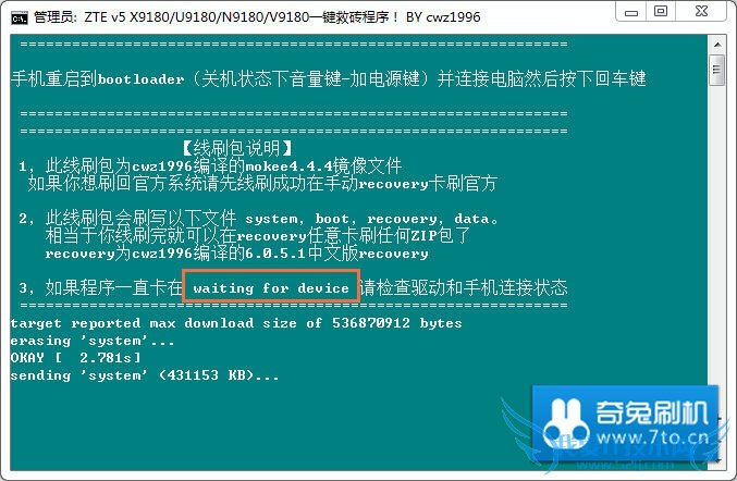 至此中兴红牛V5青春版(U9180)救砖教程全部结束。还没有学会怎么对中兴红牛V5青春版(U9180)进行救砖的机友可以试试上面奇兔ROM市场小编给大家分享的这篇中兴红牛V5青春版(U9180)救砖教程。