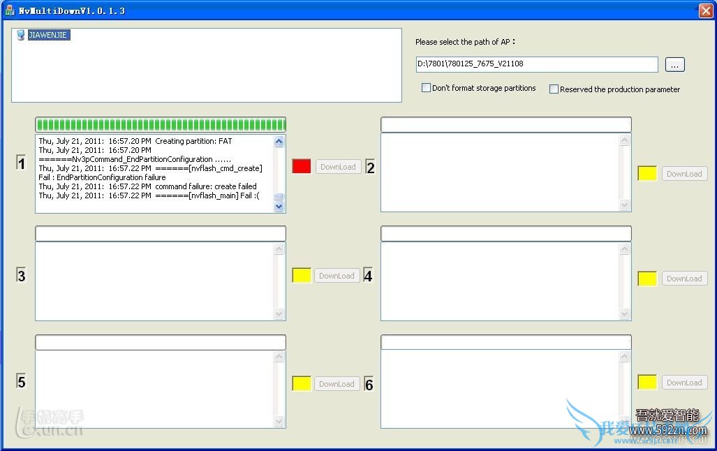 如果在下载的过程中手机断电或者是USB线连接不正常,会下载失败,此时状态标识块是红色的,表示现在失败,可以通过重新下载或更换到后置usb接口或更换usb线等方法解决类似问题,如下图所示: