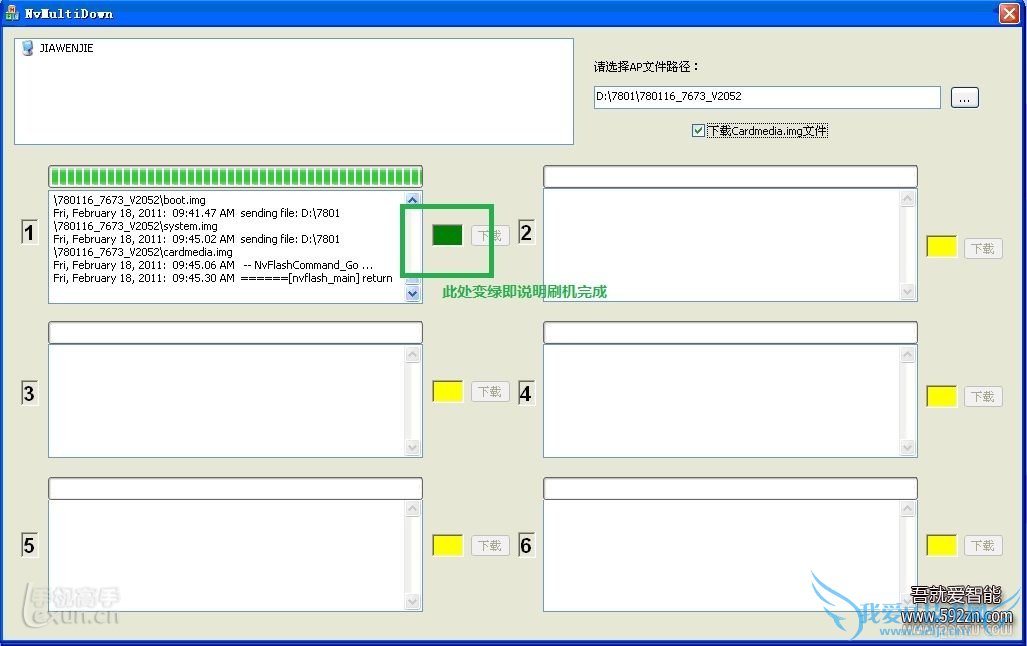 4、 AP文件下载大概需要两分钟左右的时间,如果下载成功,状态标识块为绿色,如下图所示: