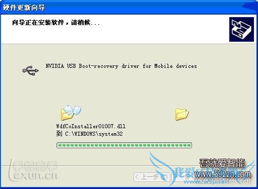 3、点击浏览按钮,找到usbpcdriver目录后,点击“下一步”按钮。开始安装驱动,如下图所示: