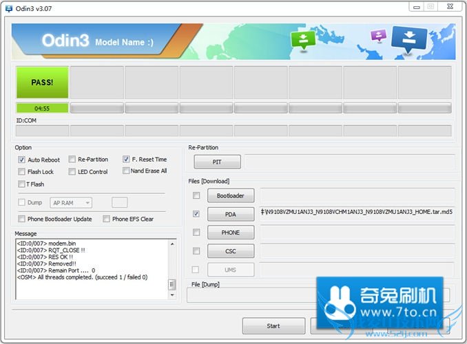 刷机完成会显示PASS,重启手机即可