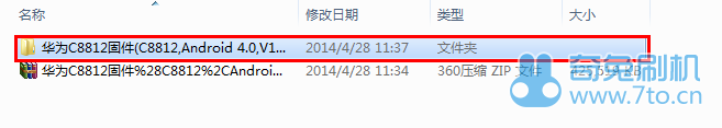 2:下载后解压,右键点击你下载的固件包,选择【解压到当前文件夹】(这里我用C8812做示范,不同型号手机下载的固件不同,不要纠结这个);