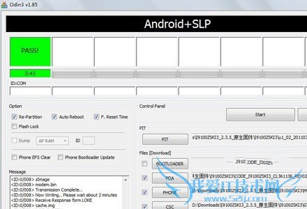 当刷完以后,最左上角会显示绿色的“PASS”此时刷机已经大功告成~~~