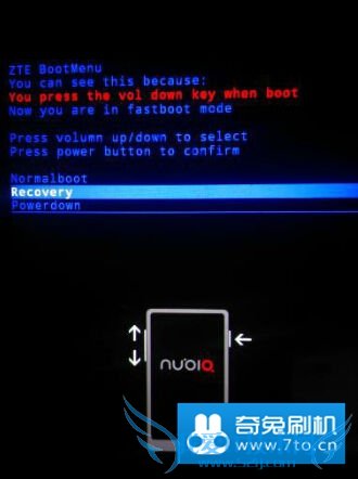 2.选择recovery,然后按开机键确认并进入recovery模式,根据下图所选择项目进行操作!(电源键确认,音量键选择)