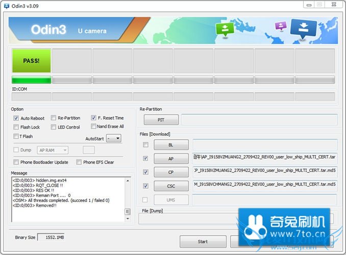 刷机完成如下,显示绿色PASS提示: