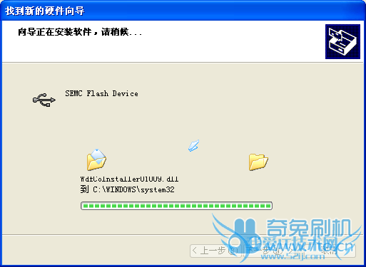 7:如果出现下图的错误或其他红字的错误。请查看电脑右下角是否是在安装驱动。如果是,请等待驱动自行安装完成。XP系统会直接弹出提示,直接点击【下一步】即可。安装完成后请拔出手机,重新点击【闪电】图标,接着刷。 如果没有出现错误,而是有进度条了,请忽略此步骤。