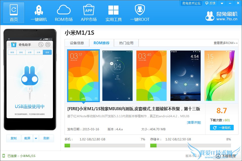 至此一键刷机教程就结束了,更多小米M1/M1S刷机ROM包可点击进入奇兔刷机ROM市场下载,希望这篇小米M1/M1S刷机教程对大家有所帮助。