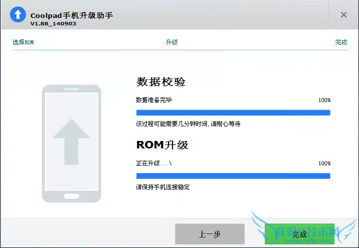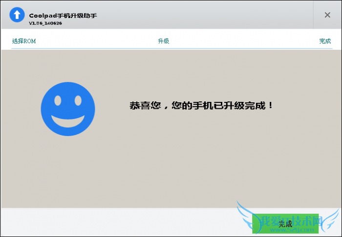 7、等待刷机进度条走完,软件提示升级成功后拔掉数据线,关闭刷机软件。