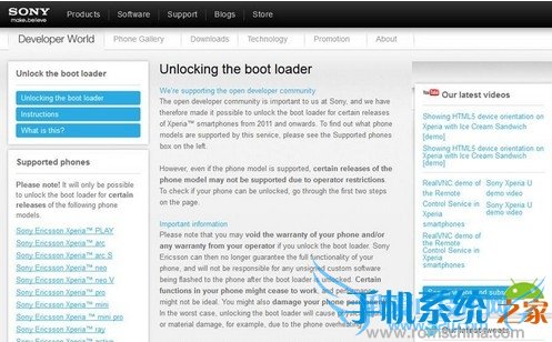 4. 进入索尼爱立信官方解锁网站(点此进入),如下图所示