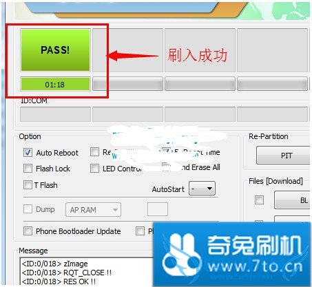 6:刷完之后,上面会显示【PASS】字样就表示刷入成功了。